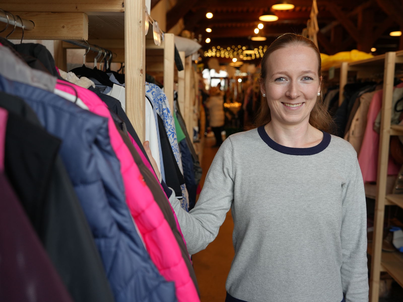 Neue Impulse in den Einzelhandel bringt auch Pia-Justine Longe: Sie betreibt in Neustadt in Holstein den Indoor-Flohmarkt Flohby. Die Idee: Kundinnen und Kunden mieten ein Regal, befüllen es mit aussortierten Stücken und überlassen den Verkauf dem Flohby-Team. „Unsere Kunden können ihre Artikel selbst vorab online einpflegen und die Preise festlegen. Wir drucken dann Etiketten mit Barcodes aus. Anschließend richten sie die Regale und Vitrinen nach eigenen Vorstellungen ein“, sagt Longe. Das Konzept kommt an. An einem Donnerstag im Dezember kommen bereits mittags viele Menschen zum Stöbern in die umgebaute Scheune, die Pia- Justine Longe mit Lichterketten weihnachtlich geschmückt hat.